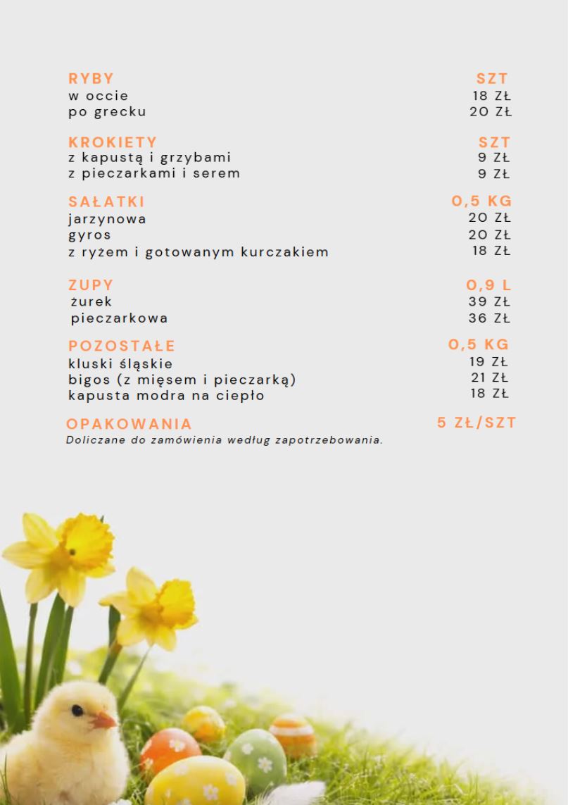 Zamówienia na catering wielkanocny przyjmujemy do 31.03.2026.